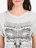 Детали: округлый вырез горловины, короткий рукав, полочка украшена аппликациями и декоративными пуговицами