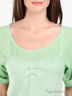 Детали: округлый вырез горловины, короткий рукав с декоративным отворотом, сборка