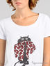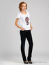 Очаровательная трикотажная футболка белого цвета из приятного на ощупь материала. Широкая круглая горловина. Короткие рукава. Забавные бархатистый принт на полочке.
