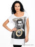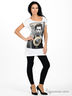 Детали: широкий округлый вырез горловины, полочка декорирована набивным рисунком с золотистым напылением