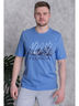 Мужская базовая футболка, в плотном голубом оттенке со стильным принтом, который является акцентом и дополняет летний образ.