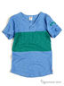 Замечательная двухцветная футболка с округлым воротником и короткой застежкой на пуговицы. Рукава короткие, декорированные логотипом. Покрой свободный.