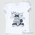 Детали: короткий рукав дополнен шифоновой вставкой, полочка декорирована набивным рисунком, с стразами и атласными бантиками.