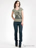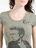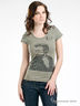 Женская футболка цвета хаки из плотного трикотажа с принтом. Декоративная брошь со стразами идет в комплекте.