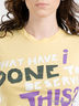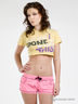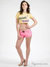 Укороченная футболка. Цвет желтый. Спереди изделия аппликация.
