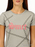 Классическая трикотажная футболка, украшенная принтом в виде цепей, золотистым сердцем и крупной надписью Smet.