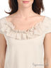 Детали: круглый вырез отделан рюшей из шифона; короткий рукав