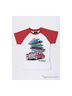 Замечательная футболка с короткими рукавами и округлым вырезом горловины. Спереди модель декорирована контрастным принтом. Отличный вариант для гардероба маленького модника.