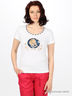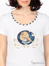 Детали: округлый вырез горловины, короткий рукав, полочка декорирована аппликацией и стразами