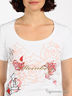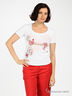 Легкая трикотажная футболка. Классический крой. Короткий рукав. Округлый вырез горловины оформлен эластичной трикотажной резинкой. Изделие декорировано рисунком-принтом и бисером.