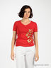 Легкая трикотажная футболка. Классический крой. Короткий рукав. V-образный вырез горловины оформлен трикотажной резинкой. Изделие декорировано вышивкой пайетками, стразами и рисунком-принтом.