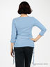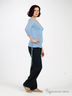 Футболка трикотажная с длинным рукавом. V-образный вырез горловины. Прямой силуэт. Манжеты посажены на резинку. Вдоль боковых швов изделия проходят кулиски со шнурками, позволяющими регулировать длину, а так же фасон изделия.