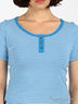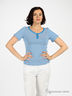 Футболка из мягкого трикотажа. Классический крой. Короткий рукав. Округлый вырез горловины оформлен трикотажной резинкой. Планка-застежка на трех металлических пуговичках.
