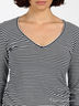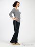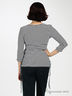 Футболка трикотажная с длинным рукавом. V-образный вырез горловины. Прямой силуэт. Манжеты посажены на резинку. Вдоль боковых швов изделия проходят кулиски со шнурками, позволяющими регулировать длину, а так же фасон изделия.