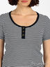Футболка из мягкого трикотажа. Классический крой. Короткий рукав. Округлый вырез горловины оформлен трикотажной резинкой. Планка-застежка на трех металлических пуговичках.
