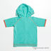 Футболка с капюшоном. Застежка-поло на кнопках, рукав реглан, открытые срезы, спереди накладной карман "кенгуру".