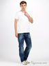 Легкая трикотажная футболка из приятного на ощупь материала. Круглая горловина с эффектом потертости. На полочке белый принт с прострочкой. Простая и стильная модель подойдет для любых жизненных ситуаций.