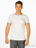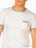 Футболка трикотажная классического кроя. Прямой силуэт. Короткий рукав. Округлый вырез горловины и манжеты окантованы трикотажной тканью в черно-белую полоску. На груди расположен небольшой кармашек с пришитой металлической пластинкой с логотипом бренда.