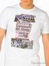 Футболка классического кроя. Выполнена из трикотажной ткани. Прямой силуэт. Округлый вырез горловины оформлен эластичной трикотажной резинкой в мелкий рубчик. Изделие декорировано рисунком-принтом в виде газетной вырезки.
