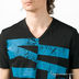 Стильная трикотажная футболка с короткими рукавами и V-образным вырезом горловины. Спереди яркий принт.