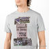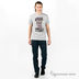 Футболка классического кроя. Выполнена из трикотажной ткани. Прямой силуэт. Округлый вырез горловины оформлен эластичной трикотажной резинкой в мелкий рубчик. Изделие декорировано рисунком-принтом в виде газетной вырезки.