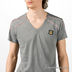 Стильная трикотажная футболка с V-образым вырезом горловины и короткими рукавами. Плечи декорированы контрастными отстрочками.