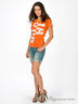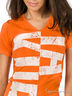 Футболка женская трикотажная. Классический крой. V-образный вырез оформлен трикотажной резинкой в мелкий рубчик. Декорирована рисунком-аппликацией.