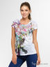 Футболка с ярким принтом Taya. Модель выполнена из тонкого легкого трикотажа. Изделие с округлым вырезом горловины. Отличный вариант для создания модного образа.