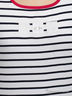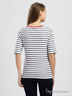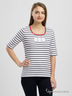 Футболка с рукавами до локтя из трикотажа в полоску и в рубчик. Контрастный красный кант по вырезу горловины, 2 однотонные нашивки + стразы и 1 нашивка с рыбкой из страз. Боковые разрезы 6 см для размера 50-52. Отличный вариант на каждый день.