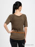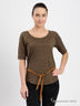 Топ из джерси, завязывающийся на пояс из искусственной замши. Модель с короткими рукавами и округлым вырезом горловины. Боковые разрезы 6 см для размера 50-52. Отличный вариант на каждый день.