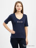 Однотонная футболка с короткими рукавами из трикотажа в рубчик 1x1, V-образный вырез + 2 однотонные нашивки + стразы и 1 нашивка с рыбкой из страз. Боковые разрезы 6 см для разм. 50-52