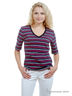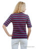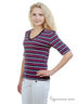 Футболка в разноцветную полоску с однотонным кантом по V-образному вырезу и рукавами выше локтя. Боковые разрезы 6 см для разм.50-52.
