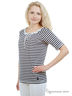 Футболка в полоску из джерси, вырез-лодочка с завязками. Боковые разрезы 6 см для размер. 50-52