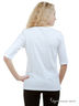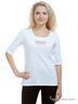 Однотонная футболка в рубчик 1x1, вырез горловины с окантовкой, принт + стразы под вырезом. Боковые разрезы 6 см для размер. 50-52