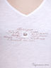 Однотонная футболка из фактурного трикотажа, V-образный вырез, принт спереди. Боковые разрезы 6 см для размер. 50-52