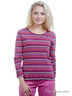 Футболка в разноцветную полоску в рубчик 1X1, с длинными рукавами, 3 пуговицами-"рыбками" на отрезной линии и планками внизу рукавов. Боковые разрезы 6 см для разм.50-52.