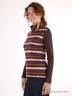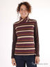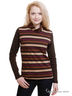 Футболка с длинными рукавами и высоким воротником. Расцветка в полоску. Однотонные рукава.