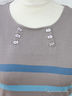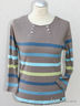 Футболка в разноцветную полоску в рубчик 1X1, с рукавами 3/4, 6 пуговицами-"рыбками" на отрезной линии. Боковые разрезы 6 см для разм.50-52.