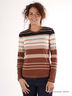 Футболка в разноцветную полоску с длинными рукавами и круглым вырезом.