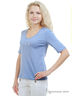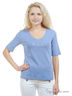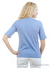 Однотонная футболка с короткими рукавами из трикотажа в рубчик 1x1, V-образный вырез + 2 однотонные нашивки + стразы и 1 нашивка с рыбкой из страз. Боковые разрезы 6 см для размер. 50-52