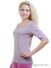 Футболка в полоску из трикотажа в рубчик 1x1, 2 однотонные нашивки + стразы и 1 нашивка с рыбкой из страз. Боковые разрезы 6 см для размер. 50-52