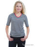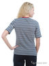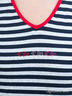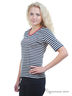Футболка с короткими рукавами из джерси в полоску. V-образный вырез с контрастным красным кантом по вырезу горловины и 3 рыбками из страз. Боковые разрезы 6 см для размер. 50-52