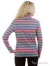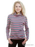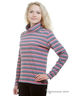 Футболка в разноцветную полоску в рубчик 1X1, с высоким воротником и пришитым ярлыком внизу изделия. Боковые разрезы 6 см для разм.50-52.