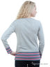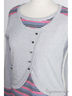 Однотонная футболка "2 в 1" + разноцветные полоски, в рубчик 1х1, детали на плечах, спереди, по низу рукавов и сзади в полоску. Отделка кантом, смещенная планка с пуговицами, 1 накладной карман справа. Боковые разрезы 6 см для разм.50-52.