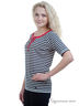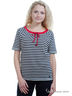 Футболка в полоску из джерси, вырез-лодочка с завязками. Боковые разрезы 6 см для размер. 50-52