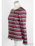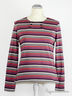 Футболка в разноцветную полоску в рубчик 1X1, с длинными рукавами, круглым вырезом и 6 пуговицами-"рыбками" спереди. Боковые разрезы 6 см для разм.50-52.