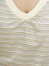 Футболка в разноцветную полоску, рукава реглан, однотонная отделка V-образного выреза, сборки под вырезом спереди и сзади, ярлык внизу изделия. Боковые разрезы 6 см для разм.50-52.
