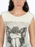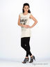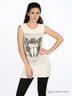 Длинная трикотажная футболка без рукавов. Вшитые подкладки-плечики. На полочке набивной рисунок.