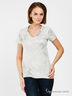 Детали: V-образный вырез горловины, короткие рукава, стильный принт птицы на полочке.