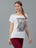 Футболка привлекательного дизайна, с округлым вырезом горловины и короткими рукавами. На груди декорирована эффектным принтом контрастного цвета. Выполненная из легкого полотна, станет незаменимой вещью для активного отдыха.